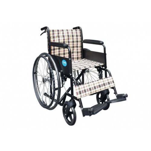 在醫院最常見的輪椅,坐墊可能支撐較弱、骨架可能較重,舒適度稍低,適合短期使用,不建議長時間乘坐。