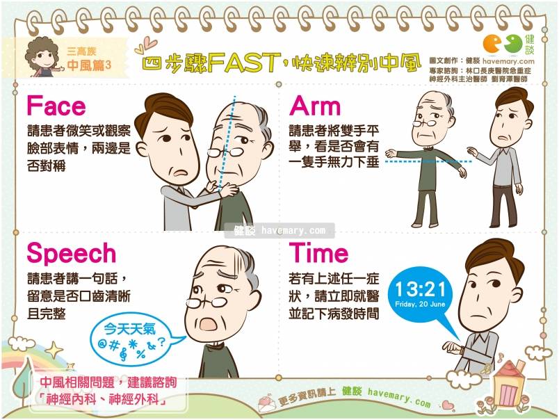 Time,若有其中一種症狀,請立即就醫並記下病發時間。