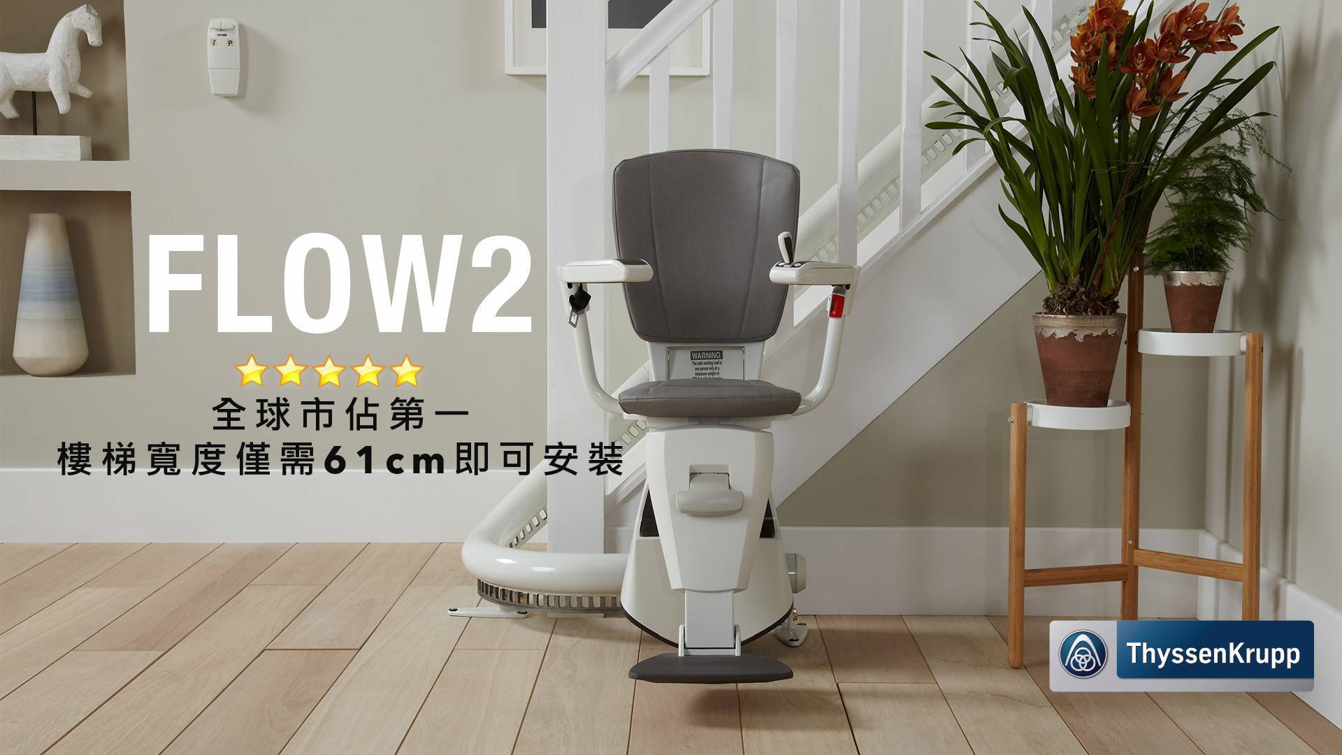 - 樓梯的寬度:想要安裝樓梯升降椅時,樓梯要有一定的寬度始能運行,在考量到乘坐者的舒適度,以及樓梯本身的條件二者的限制下,升降椅的機身厚薄度及軌道的設計就顯得相當重要,也將會影響到樓梯可以安裝的寬度,綜合以上因素,家中的樓梯只要大於61~70公分以上,就能使升降椅正常的運行。