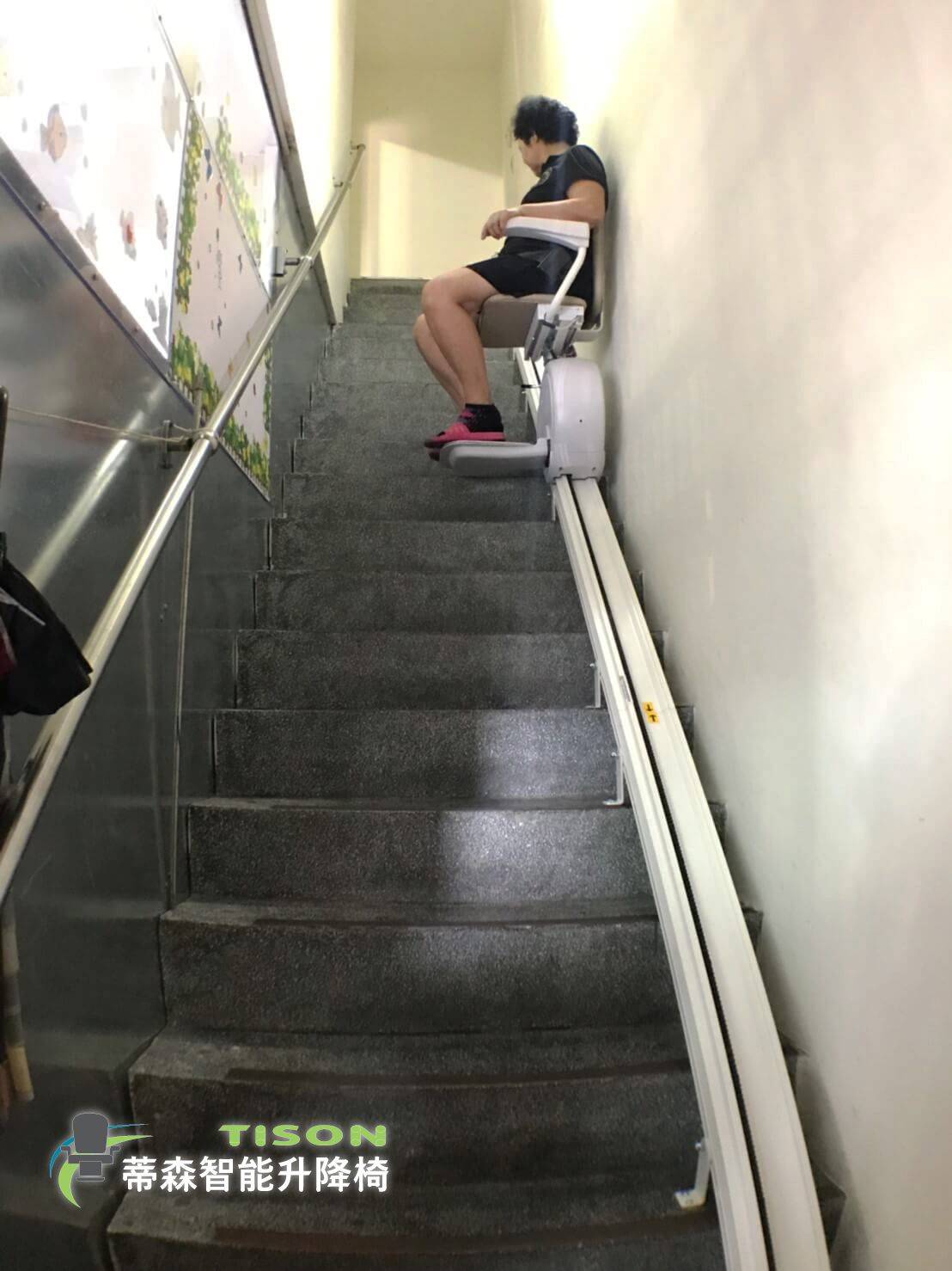 樓梯升降椅樣式百百種,有各國進口跟國產的,張太太想要輕巧又方便收折的機款,最後尋找到了蒂森智能升降椅,蒂森的業務人員考量到張太太想要收摺體積小不佔空間的需求,推薦張太太使用加拿大K2款直軌式升降椅,收摺後只有27分分不佔樓梯空間, 且更能以國產價格買到進口品質的機型,非常划算!